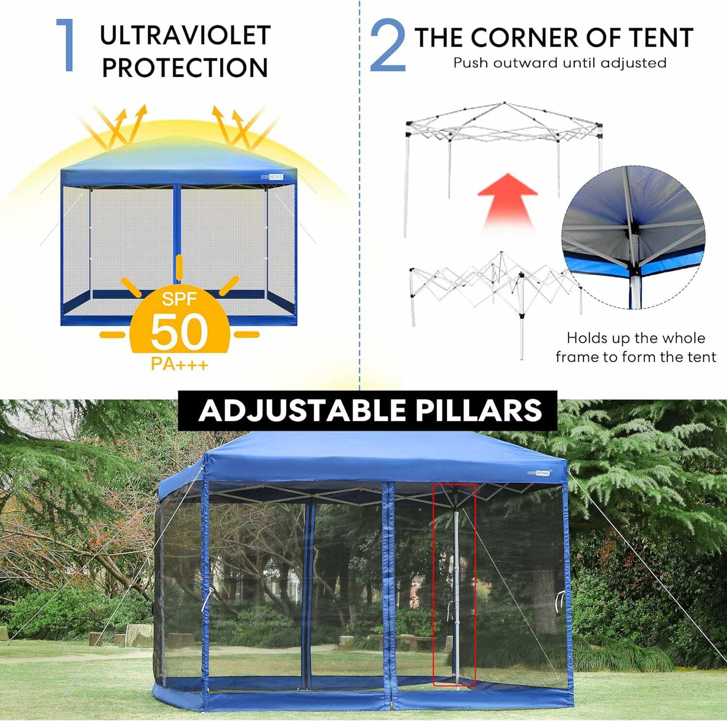 I like the size of the canopy and the push tabs for the set up in stead of having to use my thumb. There was a sewing error and I had to do a very slight modification to make it work.