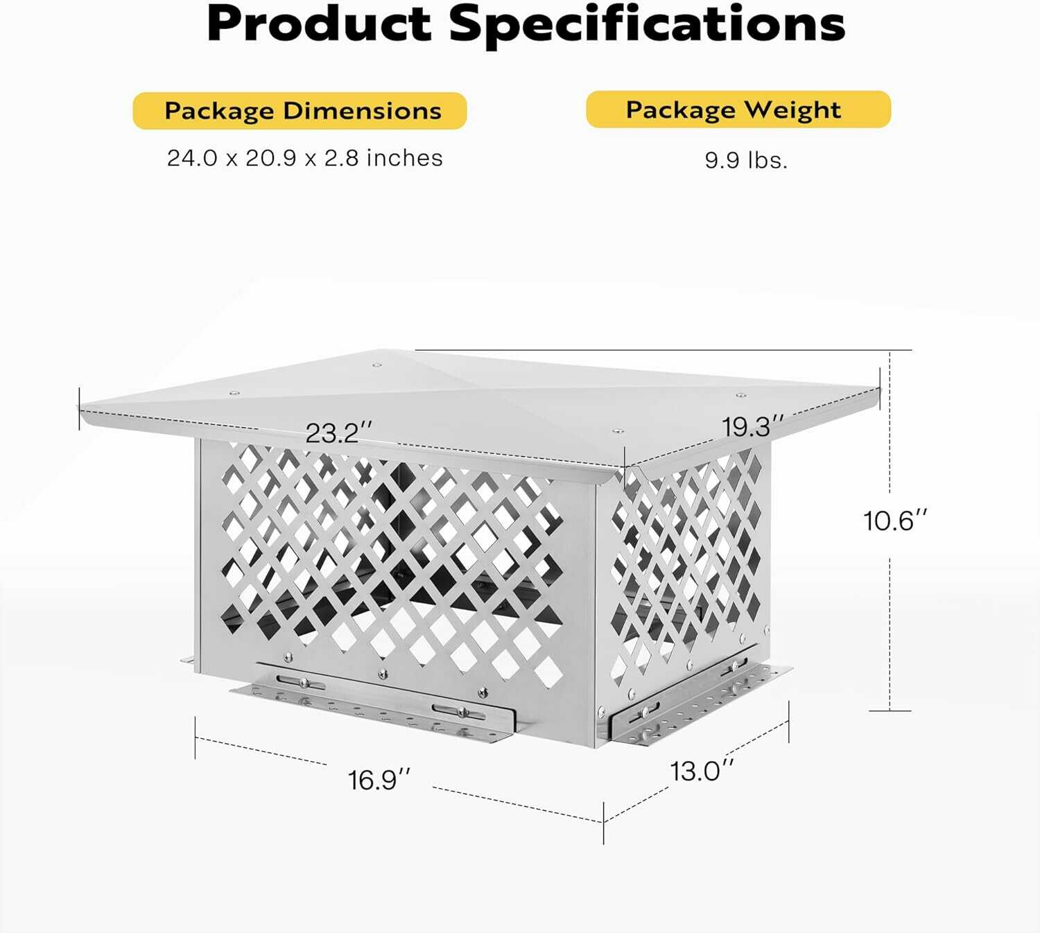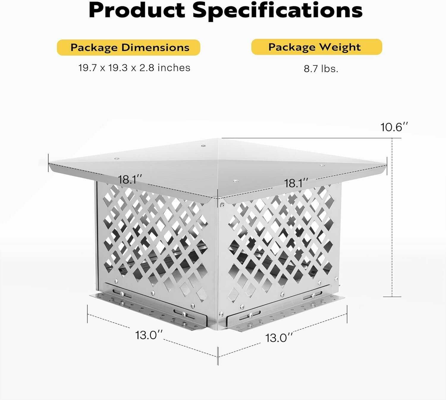 | Fit Chimney Size | 7 x 12 inches to 9 x 14 inches (flue inner diameter) | 12 x 12 inches to 14 x 14 inches (flue inner diameter) | 12 x 16 inches to 14 x 18 inches (flue inner diameter) |