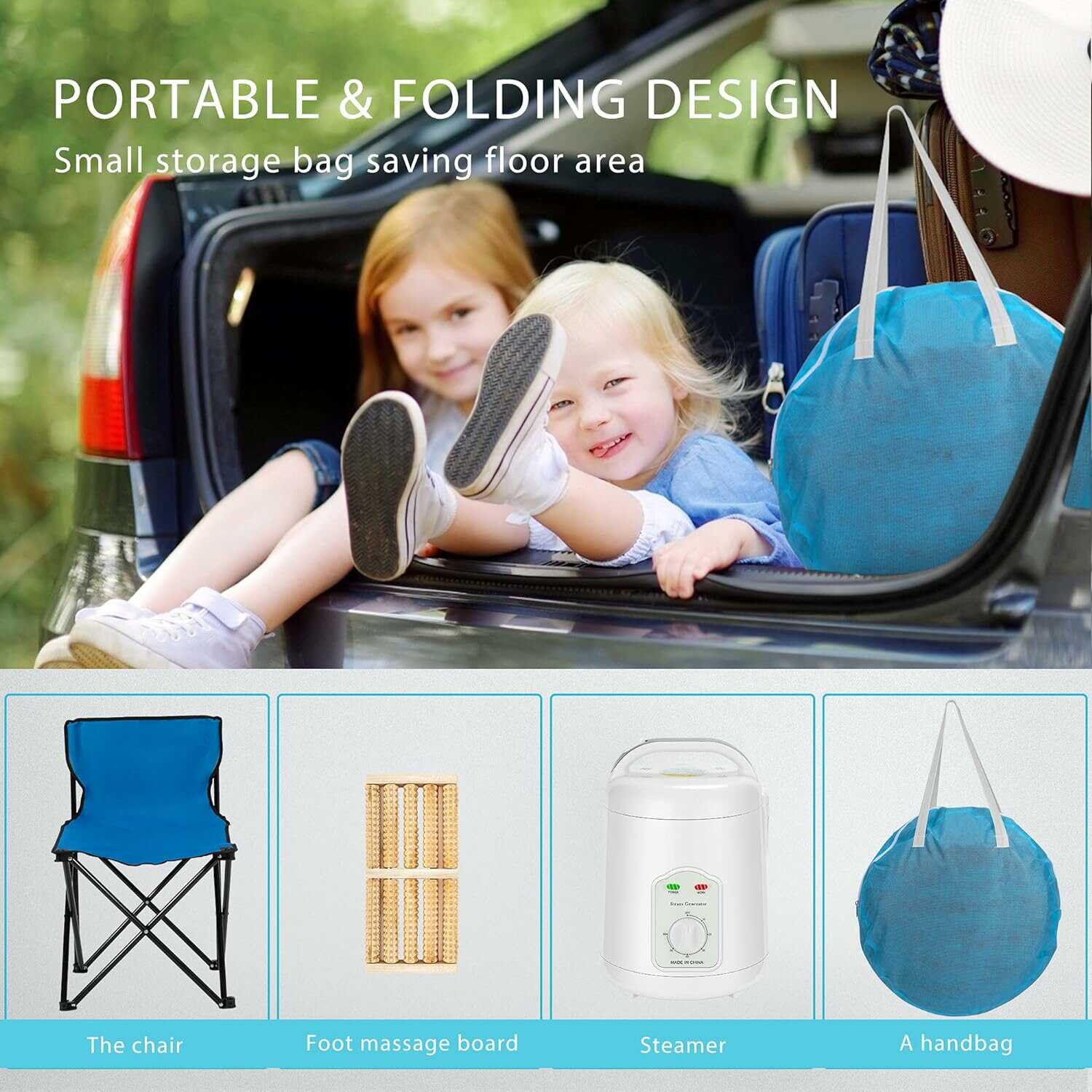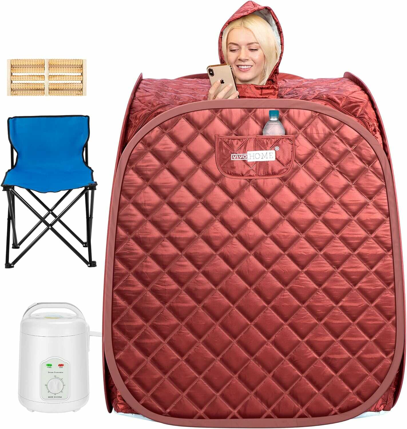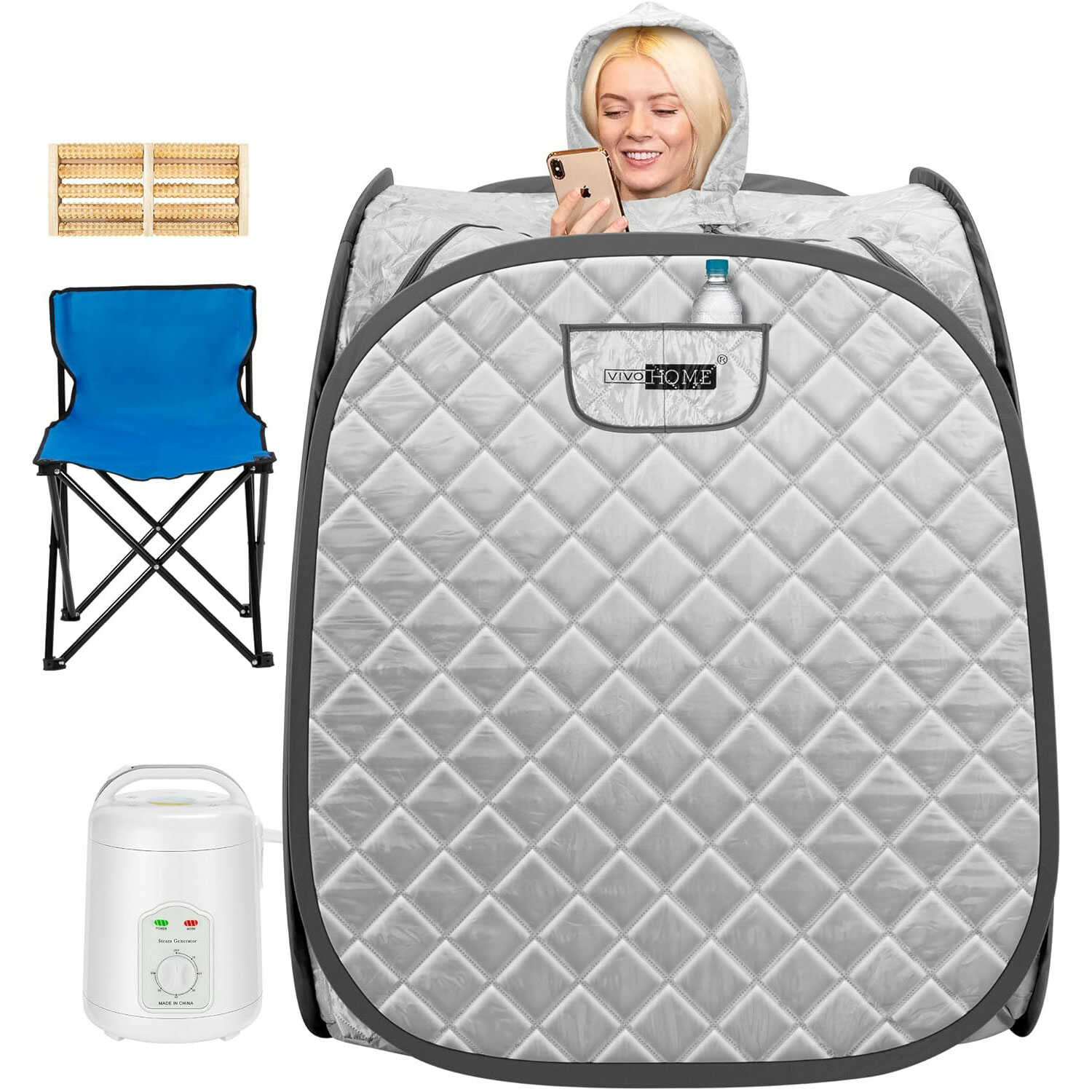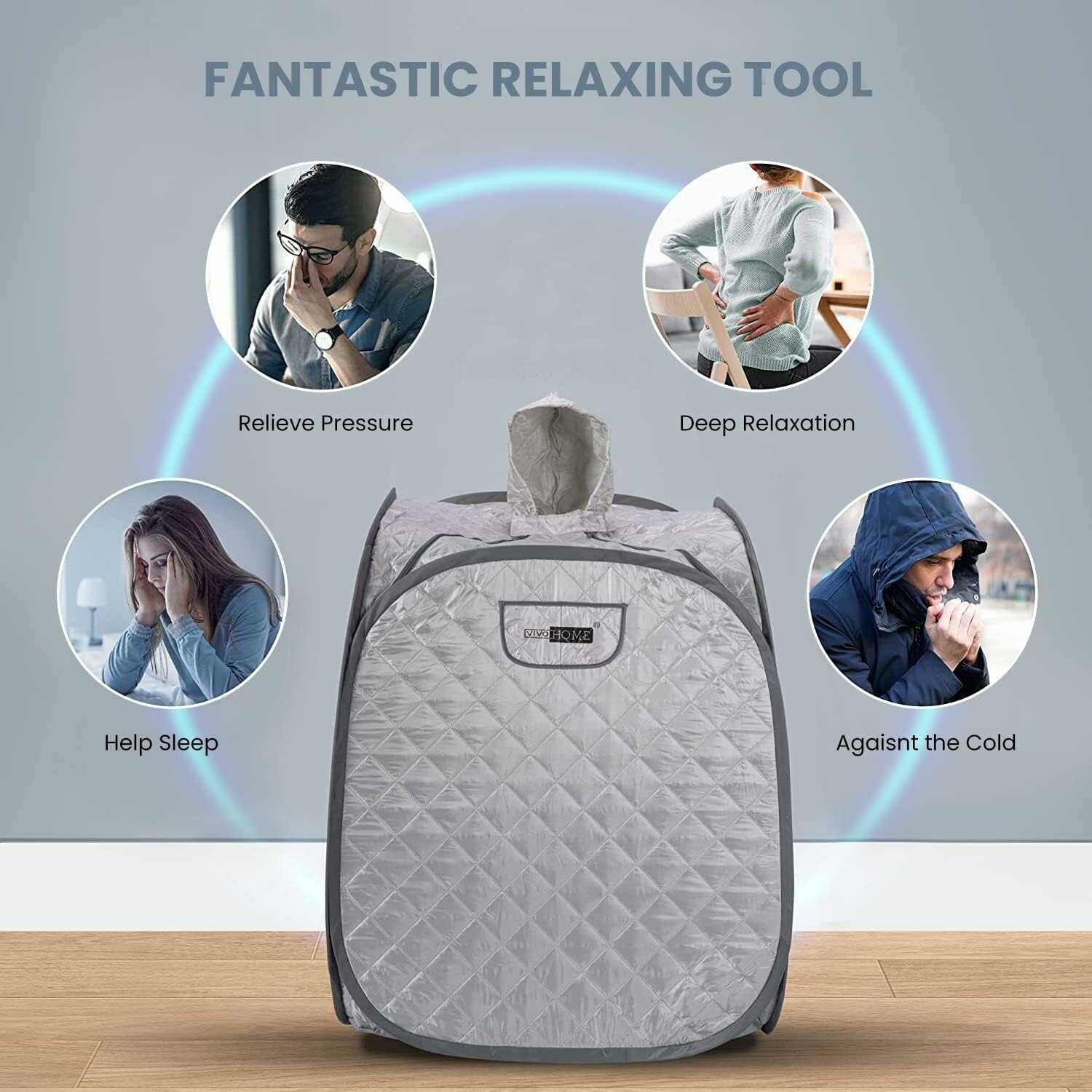 | Package Include | 1 X Sauna Room; 1 X 1.8L Steam Pot; 1 X Collapsible Chair; 1 X Medicine Rack; 1 X Foot Massage Roller; 1 X Absorbent Pad; 1 X Hose; 1 XCarrying Bag |