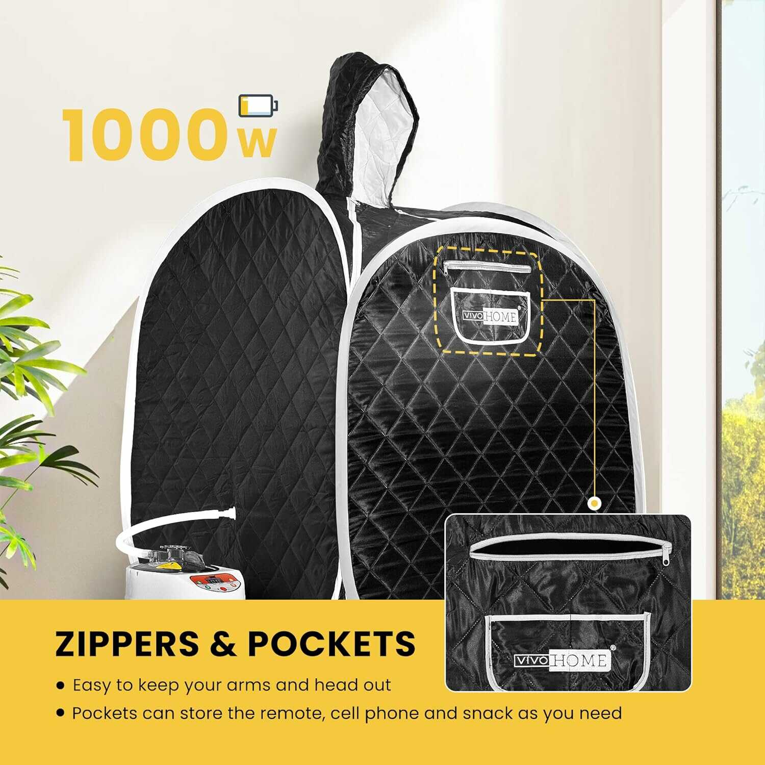Warning:Keep the sauna away from other stuff that is not heat-resistant when using it for the sake of safety.