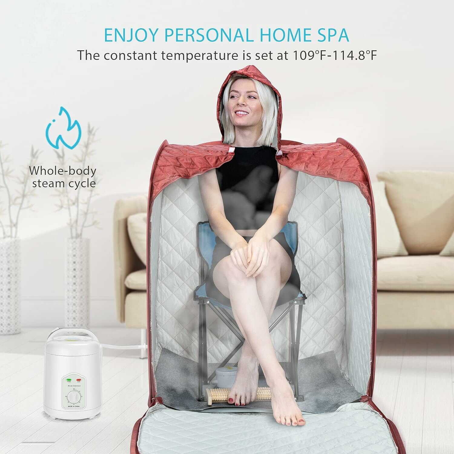 There are lots of benefits to taking a sauna. Do you want to have a personal sauna room? Get this item to have a try! It’s compact and collapsible that can be placed almost anywhere you like. It’s easy to get a relaxing and enjoyable experience with a few considerate details and accessories.